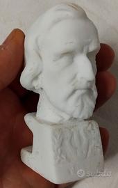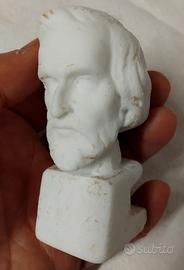 Vecchio mezzo busto di Mozart in simil-avoriolina /resina e uno di Giuseppe Verdi ("Verdi" è scritto alla base ma non si legge in foto), in materiale ruvido e poroso. Entrambi sono in buone condizioni.