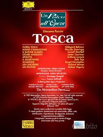 Set di due videocassette da collezione della collana "Un Palco all'Opera". La prima VHS contiene l'opera lirica "Tosca" di Giacomo Puccini, registrata al Metropolitan Opera con Plácido Domingo. Regia di Franco Zeffirelli . La seconda VHS contiene l'opera lirica "La Traviata" di Giuseppe Verdi, con Angela Gheorghiu e diretta da Sir Georg Solti. Regia di Richard Eyre. Queste edizioni sono considerate storiche per la qualità delle performance e delle messe in scena e sono accompagnati da libretti riassuntivi Si tratta di edizioni integrali anno 1997, Fabbri Video. Buonissime condizioni e non ottime perché su di esse è stato apposto un adesivo con un numero ( vedi ultima foto).