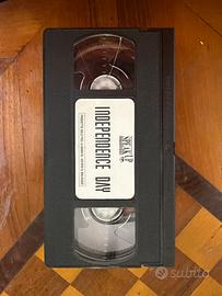 Videocassetta originale VHS del film Independence Day di Roland Emmerich, con Will Smith e Jeff Goldblum. Versione in lingua originale inglese con sottotitoli in inglese, ideale per collezionisti o appassionati di cinema vintage. In buone condizioni con custodia inclusa. Prezzo trattabile