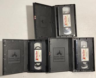 VHS Walt Disney (Pinocchio, Bambi e Robin Hood) originali, in ottime condizioni (piccolo strappo nella plastica della cistodia di Pinocchio), vendo a 10€ ciacuna oltre i costi di spedizione.