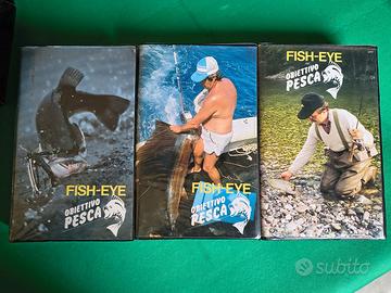 Vendo due cofanetti delle mitiche video cassette Fish Eye prodotte in collaborazione con Fassa Daiwa negli anni 80/90.