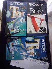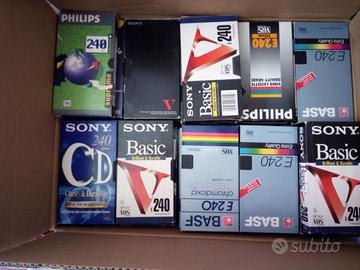 Videocassette VHS da 240 min. marca Sony e TDK, Philips, Basf (le migliori) alcune nuove, altre contenenti film, sceneggiati e altre trasmissioni tv, registrate 1 sola volta e usate pochissimo tutte con custodia. Prezzo unitario 3 ?, sconto per chi le acquista in blocco. Occasionissima per gli amanti del buon vecchio VHS!!!