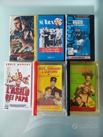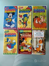 Videocassette VHS ORIGINALI N°33 pz di cui: Film N°15 - Film cartoni N°10 - Cartoni Disney impara l'Inglese N°4 - Comici Aldo-Giovanni-Giacomo N°2 con libretto incluso - Natura N°1 – Sport N° 1 Vedi titoli in foto, vendo a 2 euro cadauno.