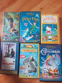 Tanti titoli per bambini, cartoni iconici e film di animazione, comprese diverse VHS Disney originali