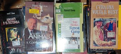 Varie videocassette VHS nuove e sigillate, titoli misti: horror, classici del cinema, commedie e film cult.