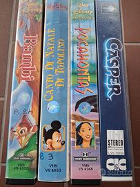 4 videocassette VHS originali da collezione di film e cartoon classici Disney per bambini.