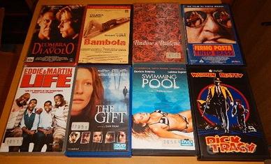 Chi fosse ancora interessato ai film in vhs Questa è un occasione da non perdere Tutta merce funzionante, dovete solo scegliere solo i titoli dei film e scriverlo nei commenti quali volete acquistare vi saranno spediti, ogni film costa € 1,50 minimo 4 titoli per un totale di € 6,00 Questi i Titoli: l'ombra del diavolo*bambola-uomo di rispetto*solo-romance*grandi inìganni-pauline& paulette*fermo posta-life-the gift*swimming pool*dick tracy*una scquadra di classe*homicide*5 giorni di tempesta*l'inferno nello specchio*clockers*oltre rangoon*codice omicidio*mai stata baciata*il genio*city of god*italia village* il testimone dello sposo*panic*la stanza di marvin*il coraggio della verita*occhi pinocchio*exctreme measures*comincio tutto per caso*inseguiti*final destination-irreversibile*captives prigionieri*da morire*sogno di una notte di mezza estate*tano da morire*anaconda*la finestra di fronte*schegge di paura*dead man walking*promesse e compromessi*il figlio di bakunin*the acid house*il mio amico vampiro*omicidio in diretta*rischioso inganno*salmonberries*goodbye lover-*ettere d'amore-ultimo appello*un giorno per caso.Attenzione la confezione del vhs potrebbero avere segni di usura e alcune copertine sono incollate sulla custodia, ma VHS è perfettamente funzionante.