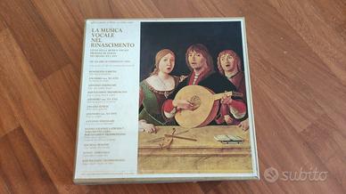 "La musica vocale nel Rinascimento: studi sulla musica vocale profana in Italia nei secoli XV e XVI: del cantar a libro ... o sulla viola" - artista: Francesco Luisi - casa discografica: ERI/Edizioni RAI RADIOTELEVISIONE ITALIANA, 1977 - Cofanetto contenente un disco in vinile 33 LP 30 cm nuovo, ancora nel suo cellophane mai aperto, un volume intatto di Francesco Luisi e una brochure di presentazione con foto e disegni in b/n. Vinile e volume come nuovi, il cofanetto presenta qualche imperfezione dovuta al trascorrere del tempo.