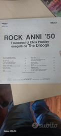 Disco in vinile 33 giri Rock. L'immagine mostra la copertina di un album intitolato "ROCK ANNI '50 - I successi di Elvis Presley eseguiti da The Droogs".