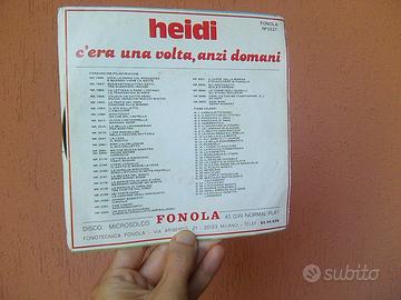 45 GIRI MICROSOLCO, HEIDI, C'ERA UNA VOLTA, ANZI DOMANI, FONOLA NP 2227, BEN TENUTO DI COPERTINA E DISCO (VEDI FOTO). FONOTECNICA FONOLA, MILANO. LO OFFRO AD EURO 4 CON LA CONSEGNA A MANO OPPURE 9 EURO COMPRESA LA SPEDIZIONE TRACCIATA POSTA 1