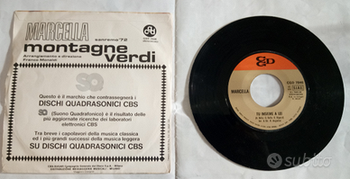 - Marcella Bella: MONTAGNE VERDI - CGD 7486 stereomono - Sanremo '72 di G. Bigazzi e G. Bella. Lato B TU INSIEME A LEI di A. Bella,G. Bella e G. Bigazzi. Euro 32