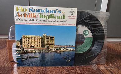 Disco vinile "Giugno della Canzone Napoletana 1961" con Flo Sandon's e Achille Togliani pubblicato dall'etichetta Durium - ep A 3277. Si tratta di un disco vinile EP con quattro tracce; 45 RPM di 7 pollici. Il disco si trova in ottime condizioni. La copertina posteriore è un pò strappata.