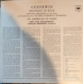 Disco in vinile di Leonard Bernstein. - Rhapsody in Blue - An American in Paris - New York Philharmonic and The Columbia Symphony - CBS 72.080 Vinili in buone condizioni, buona lucentezza e lievissimi segni che non pregiudicano l'ascolto. Etichette interne con timbro SIAE dell' epoca. mi
