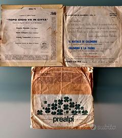 Vinili 45 giri cartoni animati anni 60: 1 – Vinile 45 giri Topo Gigio và in città, 2 – Il Natale di Calimero, 3 – Formaggino prealpino con: Il walzer del moscerino + Madama dorè. Tutti i 45 giri presentano dei segni e graffi, anche le copertine riportano i segni del tempo, per appassionati del vintage vendo a 5 euro cadauno Vendo a Verona VR e Provincia o paesi limitrofi