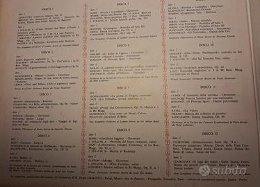 Vendo vinili di musica classica e lirica a 1 euro/disco. - I grandi musicisti: Franz Liszt - Nikita Magaloff, pianoforte: Tchaikovsky concerto n. 1, Chopin - Reader's Digest: Festival di Musica Classico Leggera (12 dischi) - Reader's Digest: perle del melodramma (12 dischi) - Stasera All'Opera: La Boheme (2 dischi) - Orchestra Rico de Almenda - Tumbando cha cha cha e samba - Warner Bros: My Fair Lady