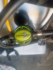 Due bombole da sub 18 litri e una da 15 litri completa di tutto erogatore più schienale entrambi le bombole.non spedisco solo ritiro a mano