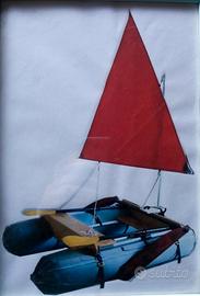 due esemplari pratico espositivi nuovi+ un prototipo kit vela + progetti e molti componenti per la realizzazione di ulteriori esemplari di questo natante anti foratura & abrasione del tipo pontoon boat individuale, lunghezza attuale circa 6', leggero e facilmente collassabile per trasporto. Progetto base suscettibile di numerose configurazioni sia dimensionali che di allestimento. Impiegabile in molteplici ambiti di utilizzo in attività acquatiche