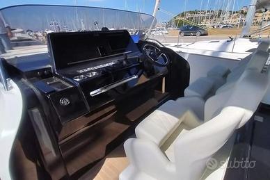 Solaris Power 44 Open - nuovo da immatricolare, no flag. 2 VOLVO PENTA IPS 650 (D6-480HP) maggiorati, teck naturale con fughe grigie su tutta l'imbarcazione, Interni chiari, doppia cabina con letti matrimoniali + porta divisorio tra le due cabine, generatore, doppiomonitor GARMIN 12", Terrazza apribile lateralmente, Interceptor Automatico, Interceptor Manuale, Joystick Drive, Low Speed mode, Ecoscandaglio, Tastiera controllo remoto GRID per Display multifunzione, Autopilota, Coperta in teak con comento nero, supplemento per comento grigio, terrazze laterali apribili con rivestimento in teak, spiaggetta di poppa lunga con sistema idraulico sali e scendi compresa scaletta di discesa automatica, Prendisole poppa con panca separata, apertura elettrica, cuscineria, Upgrade per disegno diamantato su tappezzeria esterna, Asta portabandiera per due bandiere, aria condizionata calda/fredda zona di prua, Cabina armatoriale di poppa completa di vetrature a scafo, Parete di separazione con porta per le due cabine, Conta catena digitale, kit lusso, kit ormeggio, Asta inox porta parabordi gavone di prua, Impianto zstereo cabina armatoriale, Batterie servizi aggiuntivi, Pacchetto luci di cortesia, 3 coperture sedili guida, coperture prendisole poppa e divano, coperture sedute di poppa, copertura per tavolo a pozzetto, generatore 5kW, Bimini poppa con pali amovibili in carbonio completi di supporti per stivaggio.