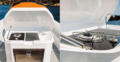 New entry della linea, sviluppato sulla scia del successo dei modelli procedenti, questo gommone si caratterizza per gli ampi spazi e i numerosi accessori che lo rendono ideale per navigazioni più lunghe: dotato di un piccolo bagno all'interno della console, c'è la possibilità di aggiungere un frigo per vivere il mare al massimo del comfort. Il gommone possiede inoltre un gavone di prua estremamente spazioso per riporre ogni attrezzatura o strumento utile per le giornate fuori porta. La poppa altrettanto confortevole ed estesa, offre la possibilità di diverse configurazioni: dal divanetto con tavolino al prendisole unico capace di ospitare fino a 4 passeggeri.