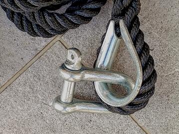 4 cime di ormeggio nere da 20 mm. a 3 legnoli lunghezza 4 metri con redancia zincata e grillo zincato da catena idoneo.