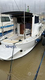 Splendido gozzo cabinato 9ftx2,75 motore vm 140 hp anno 2000 con 2000 ore perfettissimo tagliandato ogni anno con giranti cinghia nuove tutti gli anni appena sostituite tutte le prese a mare in bronzo riser in acciaio nuovo carena 11/2025 2 pannelli solari con regolatore wrc ppt da 250w carica batteria victron nuovo 220 2 batterie yuasa marine da 100,pilota automatico su guida esterna a barra cuscinerie interne e copertura su misura 2 anni bagno elettrico 2 anni natante in eccellenti condizioni consumi a 7,5 kn 5 lt ora scarsi max velocità 13 kn baderna nuova su asse anch'essa sostituita 4/5 anni fa frigo ghiacciaia letto matrimoniale grande a prua piu dinette 180 cm cucina 2 fuochi a gas bombola 5lt del 30/12/25 top Franke in acciaioe tanto altro visibile a Genova sestri in mare possibile ogni prova