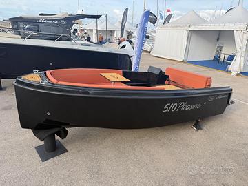 NUOVA MANARA 510 PLEASURE Pezzo di listino da Euro 16.900 più iva senza motore PROMO PER IMBARCAZIONE DEMO 510 PLEASURE - da euro 10.990 più iva più optional più motore VANTAGGI RISPETTO ALLA CONCORRENZA : 1. DESIGN MODERNO CON LA SUA PRUA A PIOMBO CHE DI CERTO NON PASSERÀ INOSSERVATA 2. COLORAZIONE BLACK EDITION CHE LA DISTINGUONO DALLA CONCORRENZA 3. UNICA PER I SUOI GRANDI PRENDISOLI DI PRUA E DI POPPA , PARAGONABILI A QUELLI DI UNA IMBARCAZIONE DI DIMENSIONE SUPERIORE 4. INCREDIBllE DINETTE A PRUA DOVE SI OSPITA COMODAMENTE 5 PERSONE ED ABBASSANDO IL TAVOLO SI TRASFORMA IN GRANDE PRENDISOLE 5. PRENDISOLE DI POPPA DI GRANDI DIMENSIONI CON SCHIENALE BASCULANTE 6. COMODO MOBILETTO CON LA POSSIBILITA' DI AVERE FORNELLO E FRIGORIFERO (OPTIONAL) 7. CARENA PRIVA DI ROLLIO GRAZIE ALLA SUA CONFORMAZIONE 9.MURATE DI GRANDE ALTEZZA Dati tecnici: Lunghezza 5,10 mt Larghezza 2,10 mt Portata persone 6 Potenza massima 40 CV Peso senza motore c.a 450 kg Omologazione CE Categoria C Ritiriamo Eolo saver cranchi selva sessa orizzonti trimarchi Marinello Ranieri gommone scar fish idea marine mano marine italmar Jaguar aquabat aquamar bellingardo bayliner cranchi jeanneau beneteau quicksilver Mercury Honda suzuki brube saver salpa mano marine italmar Jaguar aquabat aquamar jeanneau beneteau quicksilver