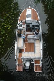 Manara 695 CABIN DEMO SENZA MOTORE PREZZO DI LISTINO EIRO 44.900 PIÙ IVA SENZA.MOTORE SOLO PER IMBARCAZIONE DEMO DA EURO 36.900 più iva PIU OPTIONAL PIÙ MOTORE Prezzo fiera scontato 36.900 più iva NUOVA MANARA 695 CABIN DESIGN SOLIDITA QUALITA’!!! SPAZI PARAGONABILI A QUELLI DI CATEGORIA SUPERIORE!!! LUNGHEZZA FT 7.20M LARGHEZZA 2.50M Peso circa 1600 kg Portata persone 8 Posti letto 3 Potenza massima 300cv LA BEST SELLER DEI CABINATI 7M non passerà INOSSERVATA per la sua qualità Design, spazio pozzetto e cabina!!! Manara 695 Cabin è una barca con una linea gradevole è in grado di soddisfare i requisiti di funzionalità di design moderno e grande comfort abitativo. Robustezza, design e qualità costruttiva contraddistinguono le imbarcazioni Manara. La luminosa cabina dispone di confortevoli 2/3 posti letto e di un secondo letto separato longitudinale anche per un adulto. L'altezza in cabina è di circa 1,75m dotata di bagno in locale separato con lavello e doccia, angolo cucina attrezzato con lavello e fornello esterno. Completano la barca un unico comodo ed il più ampio pozzetto nella sua categoria con chaise-lounge più a poppa, troviamo un comodo divanetto a U con un tavolo centrale, che abbassandosi, trasforma il tutto in un grande prendisole Ritiriamo saver ranieri sessa gobbi selva italmar allegra trimarchi tancredi scar marinello brube bayliner searay fourwinns crownline coral bay gozzi aprea sciallino brube orizzonti beneteau quicksilver Mercury jeanneau prestige axopar saxdor eolo saver ranieri mingolla gaia giupex laver salpa italmar Jaguar aquabat aquamar bellingardo zodiac capelli mercury