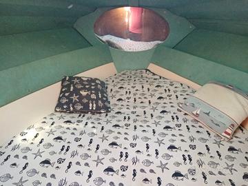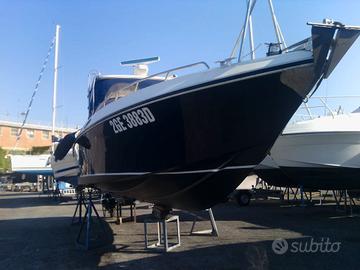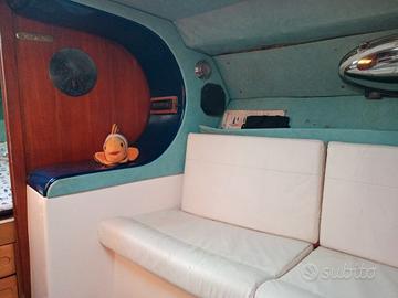 Anno 1984, l.f.t. 10,30, natante entro 12 mg, 2 x 240 Volvo P. T.D., linea asse, consumo orario 40 lt, vel. crociera 25, max 30 nodi, cabina doppia prua, quadrato trasformabile, bagno con wc elettrico, cucina interna 2 fuochi, esterna 1 fuoco, ghiacciaia a pozzetto, Vhf, Gps plotter, eco stereo.