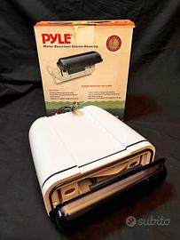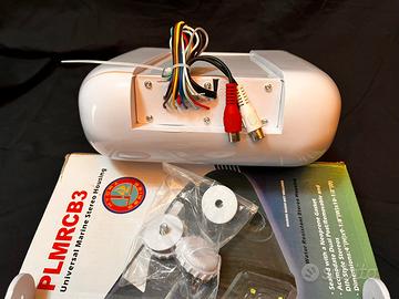 Custodia impermeabile universale: protegge la radio da agenti esterni , garantendo la massima protezione; facile accesso, dotato di sportello ribaltabile con meccanismo a molla che consente di cambiare canale o volume della radio; custodia bianca con pannello frontale fumé resistente ai raggi UV; staffa di supporto per diversi tipi di installazione: include cavi di collegamento. Modello Pyle PLMRCW3 bianco *; 2 possibilità di posizionamento: aperto e chiuso; struttura in policarbonato; guarnizione in neoprene; ingresso 3 cavi di alimentazione; ingresso 8 cavi per gli altoparlanti; Ingresso 2 cavi rca; ingresso per antenna. Dimensioni contenitore: 26,5 x 23 x 10 cm; peso del contenitore: 0,86 kg. *NB. Questo contenitore di colore bianco differisce per il prezzo superiore rispetto al medesimo modello di colore nero ( PLMRCB3 ).