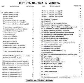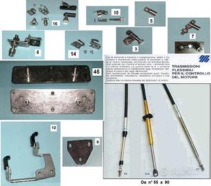 Cavi per timonerie - Cavi per marce/gas -Kit di collegamento - Attacchi al motore - Maniglie in gomma - Tessuti per gommoni - Valvole aria - Valvole di scarico acqua - Tappi - Flange passacavi - Maniglie e mezzi anelli inox .