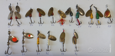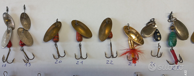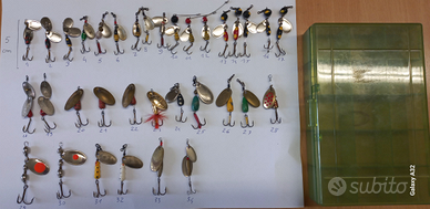 Vendo in blocco o singolarmente cucchiaini rotanti pesca spinning trota, persico, bass, Marche Martin, Mepps Prezzo singolo euro 2 In blocco 34 cucchiaini più scatola euro 50