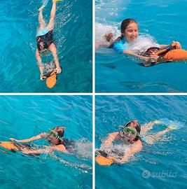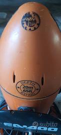 Un acquascooter che può essere usato come propulsore di un materassino per andare a fare il bagno al largo, come aiuto nella semplice nuotata o per andare in profondità sul fondo marino fino a 20 metri.