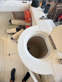 completa il natante un sacco di accessori/dotazioni: ecoscandaglio, gps, pompe per vasca vivo e lavaggio ponte, doccetta acqua dolce esterna e lavello in cabina, wc chimico, vhf, radio, luci pozzetto, zattera di salvataggio, porta canne da traina, porta canne da riposo ecc..