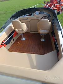 Acquaviva 590 s tutta rifatta completamente!!!! interni in pelle nautici beige morbidi ,sedili nuovi ,volante sportivo in mogano , ecoscandaglio, luci di via ,radio USB ,altoparlanti nautici,luci al led nel pozzetto e due luci a poppa subacqueo blu elettrico,GPS, strumentazione nuova con colore retro rosso, pavimentazione in legno tek vero , serbatoio in acciaio nuovo, dotazioni per 6 persone,motore evenrude 175 CV recente con sole 100 ore di navigazione già tagliandato , sostituito candele filtri girante olio piede tutto nuovo... portato a zero la scocca con tre mani di acqua stop e due mani di anti vegetativa con relative foto se volete assicurarvi del lavoro eseguito.... La cambio per un altra tipologia di barca ..PS: prezzo si intende senza carello