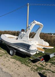 VERO AFFAREEE!!! Come da titolo vendo per immediato realizzo splendido gommone Kardis Fox 5.70 NUOVOOOO DI FABBRICA ANCORA DA ALLESTIRE FULL OPTIONALS!!! Per chi lo conosce non ha bisogno di presentazioni, noto sopratutto per le sue doti di navigazione carena asciutta e morbida sulle onde oltre ad avere un'estetica unica nel suo genere. Lungo 6 metri e largo 2,42 è omologato per 8 persone, autosvuotante, dispone di ben: 4 gavoni a prua, 1 a poppa e 1 sotto la consolle di guida, comodissime placette con scaletta di risalita estraibile a scomparsa, roll bar in vetroresina, tavolino, cuscineria completa a cellula chiusa marrone, bitte in acciaio inox, tientibene inox consolle. Verrà venduto assemblato con i seguenti optionals: luci di via, pompa di sentina automatica, interruttori a bascula illuminati, stereo + 2 casse, impianto benzina con serbatoio in acciaio inox 90 litri completo di tappo d'imbarco inox e indicatore benzina, impianto doccetta completo di serbatoio con tappo d'imbarco inox indicatore livello acqua autoclave e doccino, volante completo di scatola guida + monocavo, tendalino. Completo di tutta la documentazione. Può essere venduto anche su richiesta motorizzato con fuoribordo da 40 a 115 hp.