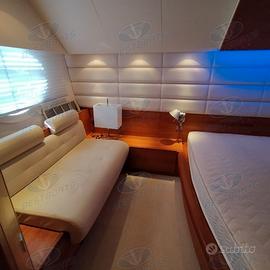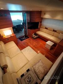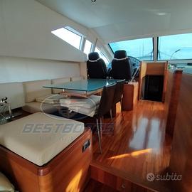Lunghezza scafo 19,99 metri Larghezza 5,28 metri Anno di Immatricolazione 2007 Anno di Costruzione 2007 Velocità Massima 30 nodi Velocità di Crociera 25 nodi Dislocamento 39 t cat A - max 18 persone Pescaggio 1,50 metri Tagliandi regolari Capacità Serbatoi 3500 litri Tipo Carburante Diesel serbatoio alluminio Tipo Elica 5 pale Motori 2 Man MAN V12 2 x 1224 hp Ampio salone con salotto in pelle, tavolo da pranzo e cucina ( a vista completa di lavello in acciaio doppia vasca con miscelatore forno Whirpool, piano cottura Whirpool Easytronic 4 fuochi, frigorifero e congelatore. Dispensa per cambusa) Postazione di comando sulla murata di sinistra, passaggio alla zona notte centrale. Lower Deck 3 cabine 3 bagni Matrimoniale VIP a prua con bagno privato completo di lavandino con specchio, wc, bidet, box doccia cabina doppia con letti in piano, con bagno privato completo di lavandino con specchio, wc, box doccia Cabina armatoriale a centro barca con divanetto sulla murata di dritta cabina armadio, bagno privato completo di wc, box doccia Alloggio equipaggio con due posti letto accesso da poppa. Descrizione Armamenti Generatore 20 kW, Climatizzatore condaria in tutti gli ambienti (da revisionare), Passerella idraulica a scomparsa totale, Teak nel pozzetto e camminamenti laterali, Stereo e impianto con altoparlanti interni ed esterni, Gru OPACMARE per varo tender sul fly, Antenna Tv SAT, TV Led in dinette e cabine, 2 winch di tonneggio a poppa, Bimini sul fly, Cuscineria prendisole completi in tutti gli ambienti, autoclave (a 24V e 220V), ICE Maker, 1 Frigo sul fly e grill elettrico, Cassaforte, Lavastoviglie