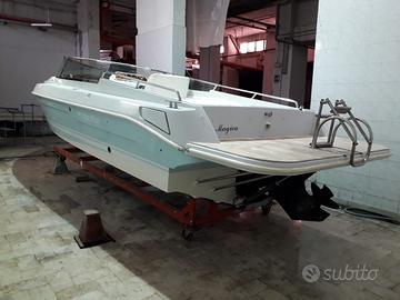 Vendo o permuto con moto o auto di mio gradimento ben tenuta airon 22 con motore efb 350 mercruiser con solo 200 ore di moto salpancore radio doccia tendalino 2 batterie con scambiatore barca molto veloce 44 nodi di Max 30/32 crocera abbastanza parsimoniosa la barca con la plancetta di poppa arriva quasi a 8 mt. è visibile presso cantiere nautico a Palermo il prezzo è poco trattabile