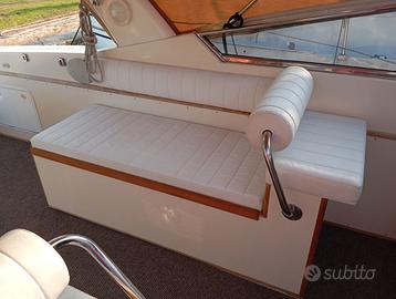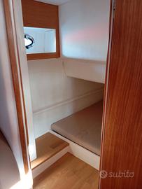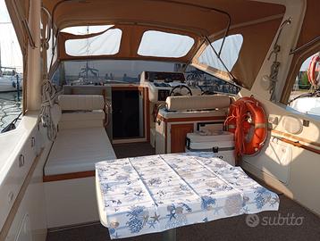 Airon Marine 36 DART del 1992: lunghezza f.t. 11,00 – larghezza 3,05 – pescaggio 0,90 – materiale: vtr – generatore Mase 3.5 kw, aria condizionata, piastra induzione doppia, frigo interno, frigo in pozzetto, wc elettrico, boiler acqua calda, 2 cabine, 4 cuccette, ampio pozzetto esterno con prendisole, panche e tavolo, numerosi gavoni interni ed esterni, plancetta di poppa, scaletta bagno, doccia esterna. Imbarcazione completamente reffittata nel 2024 incluso sbarco e revisione motori. Dotata di due motori Mercruiser diesel 4.2L da 182 cv. cadauno in perfette condizioni. GPS, ecoscandaglio, trim, flaps, salpa ancore elettrico, 50 mt. di catena calibrata nuova, tendalini nuovi, cuscineria perfetta. Visibile in Friuli.