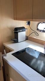 La cucina è attrezzata con: piastra in vetro ceramica, forno, 3 frigoriferi, e piano di lavoro in acciaio inox a doppio livello ideale per vivere la barca, anche per lunghe permanenze, avendo una seconda cucina nel pozzetto a gas.