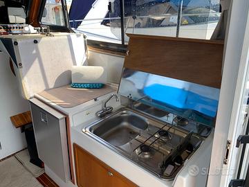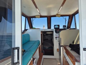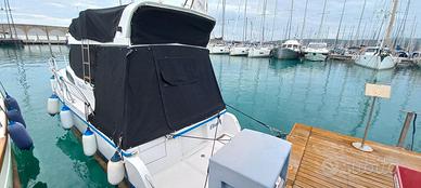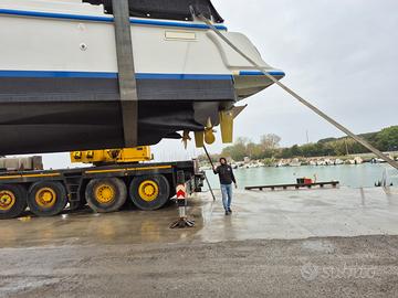 Proteo 28 Fly con due Yanmar 4LH-DTE Diesel da 183 CV e due inv. TWIN DISC TM545A ore 1680. E'dotata di autogonfiabile 8 posti 12M, tutte le dotazioni di sicurezza, giubbotti salvagente e Radio VHF, tender Honda motore 4T 2,3CV e portatender da applicare a poppa La barca ha avuto un refitting completo nell'inverno 2024/25 certificabile dal cantiere Ala Blu con i seguenti lavori: parti di legno usurato in cabina ruote porta Cabina e verniciatura Frigo Lucidatura opera morta Autoradio e altoparlanti Simrad Go9 XSE+trans.3in1 duplicabile su tablet Garmin GPSMAP 421s di backup con attacchi anche sul Fly Smontate tutte le prese a mare con Sost di tutte le valvole. pompa e serb. vetri tubi di raffreddamento dei motori/inv. e filtri acqua serbatoi di acciaio inox con relative tubazioni/valvole/Filtri carburante e alloggio in vetroresina timoni Sost boccole teflon Flap e Sost viti di fissaggio eliche e assi con Sost boccole e guarnizioni tenuta e prese a mare/valvole/tubazioni Riser Inox Tubi Scarico Allineamento Motori/assi eliche termostati Motori cinghie giranti Liquido raffreddamento con Originale Yanmar olio Motore/Invertitore con olio Bardahl Inboard 15W40 Scambiatori MG 80-150-1 olio/acqua invertitori galleggiante pompa sentina Lavaggio Tubazioni e impianto Acqua potabile da 150L con disinfettante Batterie 140Ah cavi terra/galvaniche isolatore Galvanico Victron Zinchi nuovi Trattamento Propspeed Eliche timoni e Flap Trattamento Antivegetativa International La Barca è dotata di cabina Armatoriale, bagno con doccia, Kit secondo letto in cabina. Possibilità terzo letto gonfiabile nel pozzetto che con tende chiuse diventa un terzo locale letto Presa di potenza 12V nel pozzetto Cuscineria interna, prendisole a prua e FLy in ottimo stato Coperture barca seminuove La barca naviga benissimo anche con mare molto formato e consuma poco (circa 40L/ora a 20 nodi di crociera) Max Velocità 28/30 nodi Cabinato, Antares, Merry Fisher, Calafuria, Sciallino Prezzo Trattabile