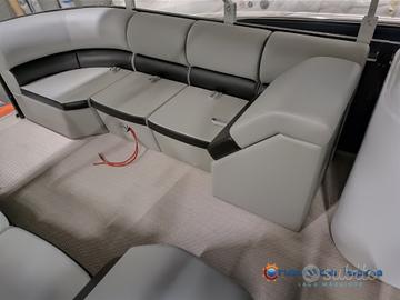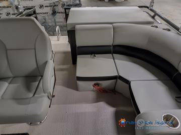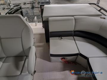 Include : 1 divano angolare posteriore - 2 divanetti anteriori - console di guida laterale - poltrona standard di guida - tavolino anteriore - luci di navigazione rossa e verde - circuito elettrico - un tendalino - rail in alluminio - copertura pavimento in pvc simile legno - MP3 con 4 altoparlanti - anello in alluminio per traino anteriore - parabordi angolari - interruttori marini 1 + 4 - scaletta in alluminio - cablaggio e canaline marine - 4 bitte in acciaio - 5 portabicchieri in acciaio