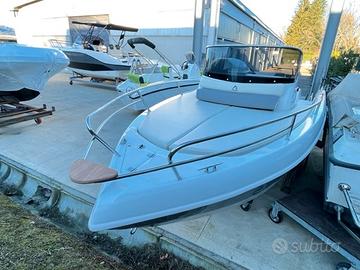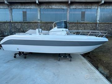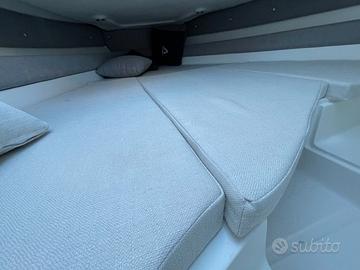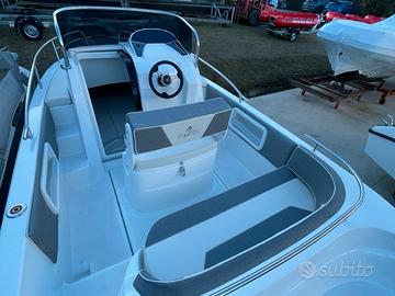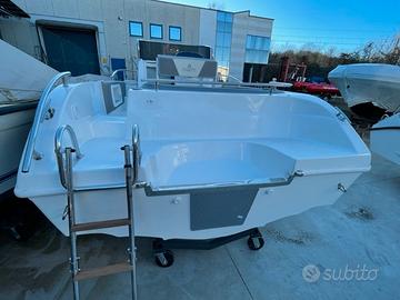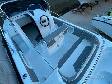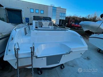 Dotazioni standard: Scafo bianco, cuscineria completa standard, luci di navigazione, pompa di sentina, porta oggetti, scaletta di risalita, cruscotto con interruttori, volante, timoneria meccanica, tromba elettrica, serie completa corrimano inox ed illuminazione cabina.