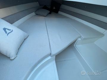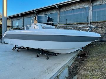 Dotazioni standard: Scafo bianco, cuscineria completa standard, luci di navigazione, pompa di sentina, porta oggetti, scaletta di risalita, cruscotto con interruttori, volante, timoneria meccanica, tromba elettrica, serie completa corrimano inox ed illuminazione cabina.