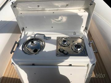 Nuovissimo Almar 911s anno 2023, lunghezza fuori tutto 9 metri e 20 centimetri. Grafica del gommone, colore e trapuntatura della tappezzeria ispirata alla prestigiosa Porsche 911. Motorizzato con 2 Suzuki DF200APX, 80 ore, tagliandati in Suzuki a Giugno 2025. Tutto in garanzia. Optional: Full Teak Luci calpestio e luci gavone di poppa di colore blu Cuscineria cellula chiusa, trapuntata 1 VHF aircom 3 Luci Rollbar 2 fornelli a gas 1 frigorifero 85 litri 1 congelatore 50 litri 1 WC elettrico con doccia al chiuso 2 Manette elettriche di comando Keyless 2 Strumenti digitali Suzuki multifunzione 1 Simrad con cartografia Navionics Italia 2025 6 casse stereo Boss 1 subwoofer Hertz 1 Amplificatore Hertz 4 Luci blu marine (prua e poppa) 1 Gonfiatore automatico per tubolari 1 Inverter 220v a bordo Antifurto satellitare h24 senza abbonamento 1 Radio Boss MGR350 con bluetooth e usb 1 Tavolo retrattile 1 Salpanacora elettrico 1 Ancora inox 7,5kg 50mt di catena Dotazioni di sicurezza completa. Prezzo leggermente trattabile.