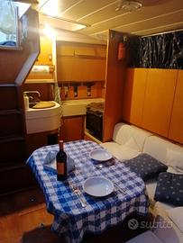 sinistra, mentre il tavolo del carteggio è collocato sulla murata di dritta. Dalla dinette si accede alla cabina armatoriale attraverso un corridoio che rappresenta la terza cabina (skipper)