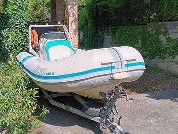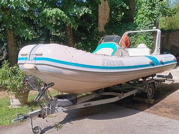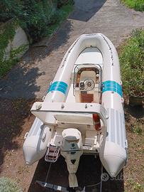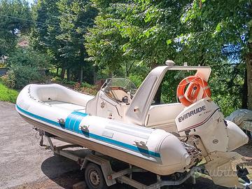 Gommone del 1996, usato 2 settimane all'anno e sempre rimessato al coperto. Evinrude E-tec 115 cv del 2006, 370 ore, sempre tagliandi ufficiali. Pratico, solido, elegante e pronto alla navigazione . Luci, faro, Doppio serbatoio, Doppia batteria, cuscineria rifatta, telo coprigommone, coprimotore e copriconsolle. Nel prezzo è compreso il carrello Ellebi revisionato