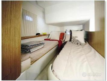 ELICA IN BRONZO 4 PALE.- ELICA DI PRUA.- SERVIZIO MOTORI E CARENA OGNI PRIMAVERA.- 2023/2024: NUOVA STRUMENTAZIONE DI NAVIGAZIONE SUL FLY, CONTROLLO DI BARRA, IMPIANTO MASTERVOLT CARICABATTERIE E INVERTER, BATTERIE, BIMINI FLY, TUTTE LE CUSCINERIE CON IMBOTTITURA DRENANTE, SOSTITUZIONE FORNELLO ELETTRICO CON QUELLO A GAS CON BOMBOLA ESTERNA E RELATIVO IMPIANTO.- SCAFO A V PROFONDO.* * * AMPIO SPAZIO SUL PONTE, AMPIO POZZETTO, SOLARIUM E PIATTAFORMA BAGNO.* * * Due cabine doppie: Matrimoniale armatore a prua e ospiti doppia letti in piano a poppa. Divano cuccetta in soggiorno.Bagno con wc elettrico.Cucina con piano cottura a gas 2 fuochi, frigorifero e microonde. Winch elettrico.Pompe di sentina, Serbatoio acque nere, Boiler, Aria condizionata, Tv, Sistema audio, Fornello elettrico ancora in dotazione.Bimini sul fly, Cuscineria prendisole fly, Mobili pozzetto, Doccia pozzetto, Pompa di lavaggio, Scaletta bagno, Solarium di prua, Luci di cortesia. Bussola, Echo, GPS, VHF, Autopilota, Radio, Lettore CD; Doppio pilotaggio: cabina e Fly con strumentazioni complete. Presa corrente 220V.Caricabatterie e Inverter Mastervolt, Nr 4 Batterie.