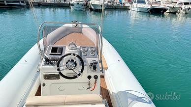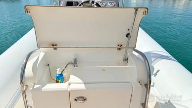 Frigo bar, Lavello sottoseduta, Cuscineria beige, Doppio tendalino in acciaio allungabile, Navigatore cartografico con ecoscandaglio, Salpancora elettrico, Stereo bluetooth, Pompa di sentina, Tanica carburante in acciao da 200LT., Doccetta acqua dolce, motore con livrea bianca, Doppia batteria, Scaletta doppia, Plancette di poppa, Teak nel piano calpestio, Telo copriconsole e molto altro.....