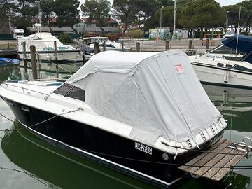 Crousing boat 8mt, cuscineria e capottina campeggio in sunombrella nuova 2025, motore Audi marine 3000 V6 td 2023, 2 batterie 2026. Letto matrimoniale di prua, bagno, cucina con frigo nuovo, divanetto convertibile in 1 posto letto. Doccetta esterna.