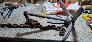 Ancora ad ombrello kg 5,5 + 1 metro di catena il tutto usato ma in buone condizioni la catena presenta ruggine, per la spedizione non mi è stato proposto dal sito Subito